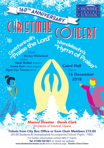 The main work in the programme is Mendelssohn's "Hymn of Praise", one of the great 19th century choral masterpieces. It will be preceded by a rare opportunity to hear the cantata "Praise God" by the Russian composer, Gretchaninoff. Written in 1914, it sets 3 psalms in music grounded in the rich choral traditions of the Russian Orthodox Church. An exciting team of young soloists will join with the Orchestra of Scottish Opera for this unique celebration which will make a fitting conclusion to Dundee Choral Union's 160th Anniversary year.