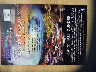 A joint performance by Dundee Choral Union & the St Andrews Chorus of Verdi's Requiem, accompanied by the Orchestra of Scottish Opera, conducted by Derek Clark. Soloists: Catriona Clark (soprano), Katie Grosset (mezzo soprano), Elgan Llyr Thomas (tenor) & Jonathan May (bass-baritone).
