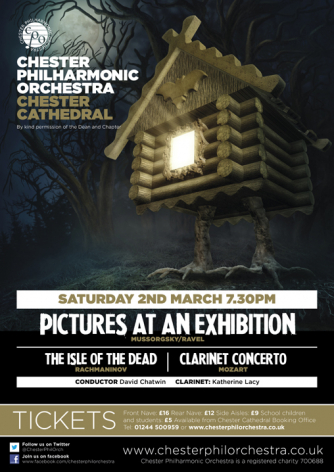 This classical music concert conducted by David Chatwin features Katherine Lacy, Principal Clarinet with the Royal Philharmonic Orchestra in a performance of Mozart's Clarinet Concerto which was composed shortly before his death. You will also hear Mussorgsky's Pictures at an exhibition which was composed following an exhibition of paintings (organised by Mussorgsky) by his friend Viktor Hartmann who had died the preceding year. The concert opens with Rachmaninov's Isle of the Dead inspired by Arnold Boeckin's painting. Come and celebrate life with us..
