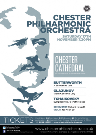 The Chester Philharmonic’s new season commences with a commemoration of the ending of the 1914/18 war, by completely contrasting pieces of music. Butterworth’s incredibly moving Tone Poem, A Shropshire Lad, the dark brooding Pathetique Symphony of Petr Tchaikovsky. and the contemplative Violin Concerto by Glazunov which ends full to the brim with life and toe-tapping exuberance. Butterworth was killed on the Somme and Tchaikovsky died just days after he composed this symphony. Our critically acclaimed soloist Korean born Joo Yeon Sir has recorded a Karl Jenkins work, which was specially written for her on Deutsche Grammophon.