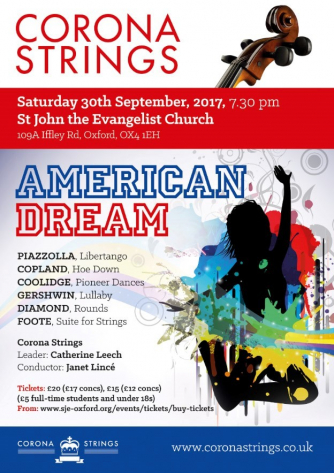 Janet Lincé’s inventive programming for Corona Strings has devised an all-American celebration for their Autumn concert on 30th September 2017 which will include evocative string works by favourite composers including Gershwin and Copland. More unusual works being performed include ‘Pioneer Dances’, written in 1970 by composer and conductor Peggy Stuart Coolidge, which was inspired by the 19th century settlers of America. David Diamond’s ‘Rounds’; probably his most popular work, are three short and contrasting movements full of foot-tapping American folk influences. And Arthur Foote’s ‘Suite for Strings’, with its playful pizzicato, was premiered and first recorded by the Boston Symphony Orchestra in 1944 under Serge Koussevitzky.