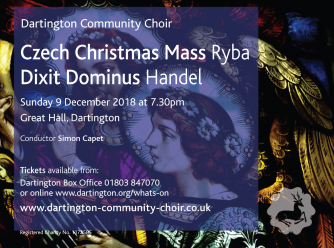 Dartington Community Choir will perform two works for its Christmas concert. Ryba’s Czech Christmas Mass, also known as the Bohemian Shepherds’ Mass, is a delightful Christmas cantata. Although framed around a traditional Latin mass, it is based on the story of four Czech shepherds to whom the birth of Christ is announced, whereupon they visit the child in the manger. Its pastoral character is reflected in its short melodic motifs inspired by folk music, supported by colourful rhythms. Written in 1796, it has been performed so regularly since the early 1800s that it is regarded, even today, as an inseparable part of Czech Christmas tradition.