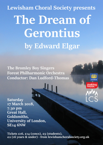 Join Lewisham Choral Society, The Bromley Boy Singers and three outstanding soloists for a performance of Elgar’s masterpiece, The Dream of Gerontius. This tale of a dying man’s journey to the afterlife includes encounters with angels and demons, a thunderous glimpse of God and a tranquil bathe in the lake of Purgatory. The subject matter gave Elgar scope to produce the most inspirational and colourful music, in turns dramatic, poignant and sublimely peaceful, ending magically with an angel’s voice floating over the double choir and boy treble ‘angelicals’.