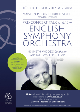 English Symphony Orchestra launch their new series of concerts in Malvern Priory by saying goodbye with a performance of Haydn’s enigmatic Farewell symphony. Renowned cello virtuoso Raphael Wallfisch joins English Symphony Orchestra for a performance of Schumann’s beloved Cello Concerto and the concert concludes with Mozart’s final symphony, a work crowned by the greatest of all symphonic finales.