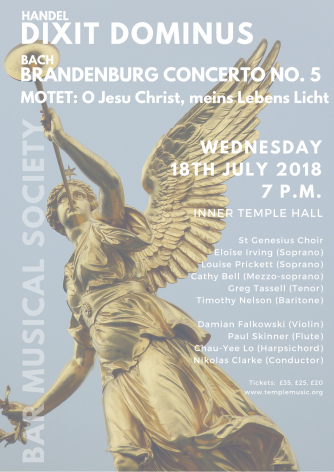 The St Genesius Choir sing Handel's Dixit Dominus and Bach's O Jesu Christ, meins Lebens Licht with orchestra. The orchestra will also perform Bach's Brandenburg Concerto No. 5.