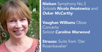 Nielsen’s 3rd Symphony (the ‘Espansiva’) is light and joyous – not ‘typical’ Nielsen at all. Its famous slow movement, which Nielsen himself described as a ‘landscape Andante,’ uses offstage solo voices to marvellous effect. Vaughan Williams then provides a virtuoso showpiece for principal oboist Caroline Marwood. A folk music-inspired pastorale is followed by a delicate minuet, while the finale is almost a perpetuum mobile – interrupted by some stunningly lyrical passages. The Rosenkavalier suite excerpts moments of Strauss’ greatest masterpiece, including the ‘Presentation of the Rose’ scene, and the most richly textured of the opera’s several waltzes. It concludes with the powerful trio for the Marschallin, Octavian and Sophie – and by the languorous final duet. Not to be missed!