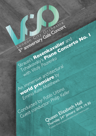 London City Orchestra culminates its 5th anniversary celebrations with a gala concert at the newly renovated Queen Elizabeth Hall. Music Director Pablo Urbina shares the stage with Vitaly Pisarenko, winner of the Franz Liszt Piano Competition, and guest conductor Philip Keller, in an evening that will showcase some uplifitng classics from the repertoire such us Strauss’ Der Rosenkavalier, Tchaikovsky’s Piano Concerto No. 1 and his Capriccio Italian. The concert also sees a world premiere by composer Emma-Kate Matthews, exploring the structure of this iconic building.