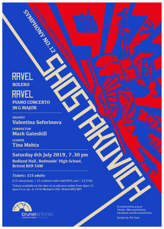 Add to my Calendar 06-07-2019 19:30 06-07-2019 21:30 36 Brunel Sinfonia Summer Concert An evening of Ravel and Shostakovich with the Brunel Sinfonia at the beautiful Redland Hall in the grounds of Redmaids' High School We are joined by the talented, award-winning pianist Valentina Seferinova who will be performing Ravel's Piano Concerto in G major. As well as numerous concert appearances, both solo and orchestral, in her native Bulgaria, Valentina has performed in Germany, Italy, France, Poland, Russia, Turkey and the United Kingdom. She also plays and records frequently for Bulgarian National Radio and Television. Redland Hall - Redmaids High School, Bristol DD/MM/YYYYDetails