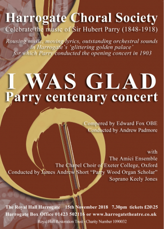 Harrogate Choral Society, currently celebrating their 70th anniversary, will be joined by the Chapel Choir of Exeter College, Oxford – where Parry studied – who are conducted by Organ Scholar James Andrew Short.