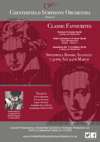 An evening of classic favourites at Speedwell Rooms Chesterfield. Nanzi Li from the Birmingham Conservatoire performs the Mendelssohn violin concerto.
