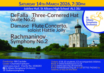 After the interval we will play Sergei Rachmaninoff’s magnificent Symphony No.2, which we enjoyed working on at a weekend workshop last September.