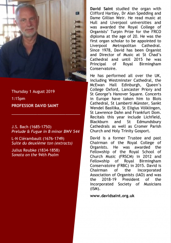 Following this Summer Organ Festival our Thursday Live recitals continue on the first Thursday of every month at 1:15pm.