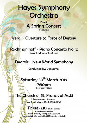 Add to my Calendar 30-03-2019 19:30 30-03-2019 21:30 36 Hayes Symphony Orchestra Spring Concert Join Hayes Symphony orchestra for an evening of well known classical music St Francis of Assisi Church, London DD/MM/YYYYDetails