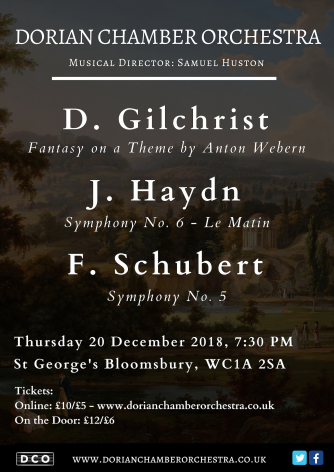 Dorian Chamber Orchestra presents an exciting programme of music spanning the styles of the Viennese masters and beyond, performed by some of the best young musicians in London in the beautiful setting of St George's Bloomsbury.