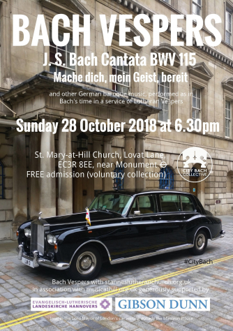 A performance of J. S Bach cantata BWV 115, Mache dich mein Geist bereit, along with other German Baroque music on period instruments, in a service of Lutheran Vespers, for which it was intended.