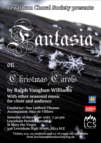 Ralph Vaughan Williams arranged folk carols from across the land to create his delightful Fantasia on Christmas Carols and this sparkling collection of melodies will form one of the highlights of Lewisham Choral Society’s Christmas concert this year. After a 5-year gap, the choir is delighted to return to its old familiar home of Lewisham’s parish church of St Mary the Virgin. Like your mother’s Christmas pudding, it will present a rich mixture of seasonal fare including traditional carols for choir and audience and original Yuletide tunes by Tchaikovsky, John Rutter, William Mathias, John Tavener and Carl Rütti for the choir alone. All of this under the direction of maestro Dan Ludford-Thomas and accompanied by Nico de Villiers. A very Merry Christmas to one and all!