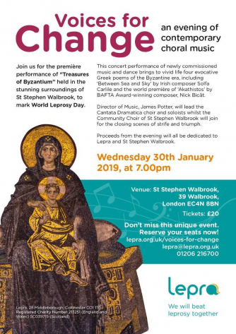 Join us for an exclusive World Leprosy Day performance of “Treasures of Byzantium” held in the stunning surroundings of St Stephen Walbrook in the City of London.