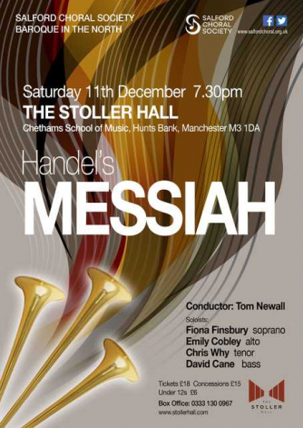 It’s time to start your Christmas celebrations in traditional fashion with Salford Choral Society and Handel’s much-loved masterpiece Messiah. Soloists Fiona Finsbury (soprano) Emily Cobley (mezzo) Chris Why (tenor) and David Cane (bass) are joined by orchestra Baroque in the North under the direction of Conductor Tom Newall.
