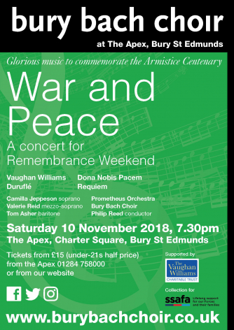 To commemorate the armistice centenary, Bury Bach Choir and Prometheus Orchestra, conducted by Philip Reed, perform two contrasting masterpieces, both inspired by war.