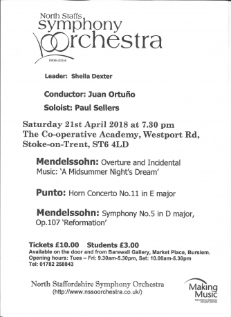 Part of the North Staffs Symphony Orchestra 2017/2018 Season